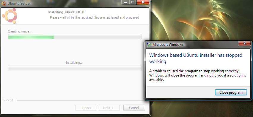 Hello, I downloaded the 8.10 ubuntu iso file earlier today, I then burnt it onto disk and ran the wubi option.