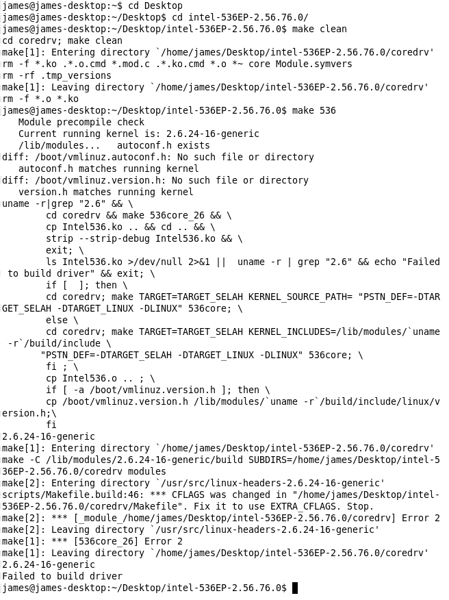 When I did "make 536", it came up with a load of text, then said "Failed to build driver".