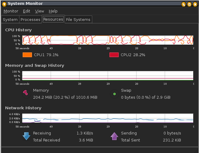 I upgraded to 8.04 from 7.10 yesterday and it is causing my 2.8Ghz P4 with HT to max out. There are no processes using more than 3% cpu. The resource tab is shown below, the choppyness of the image is due to the computer being unable to handle even taking a screenshot.