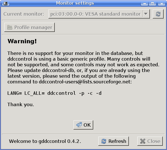 SOmeone suggested using "gddccontrol" in the terminal so I did, but I get a weird problem.